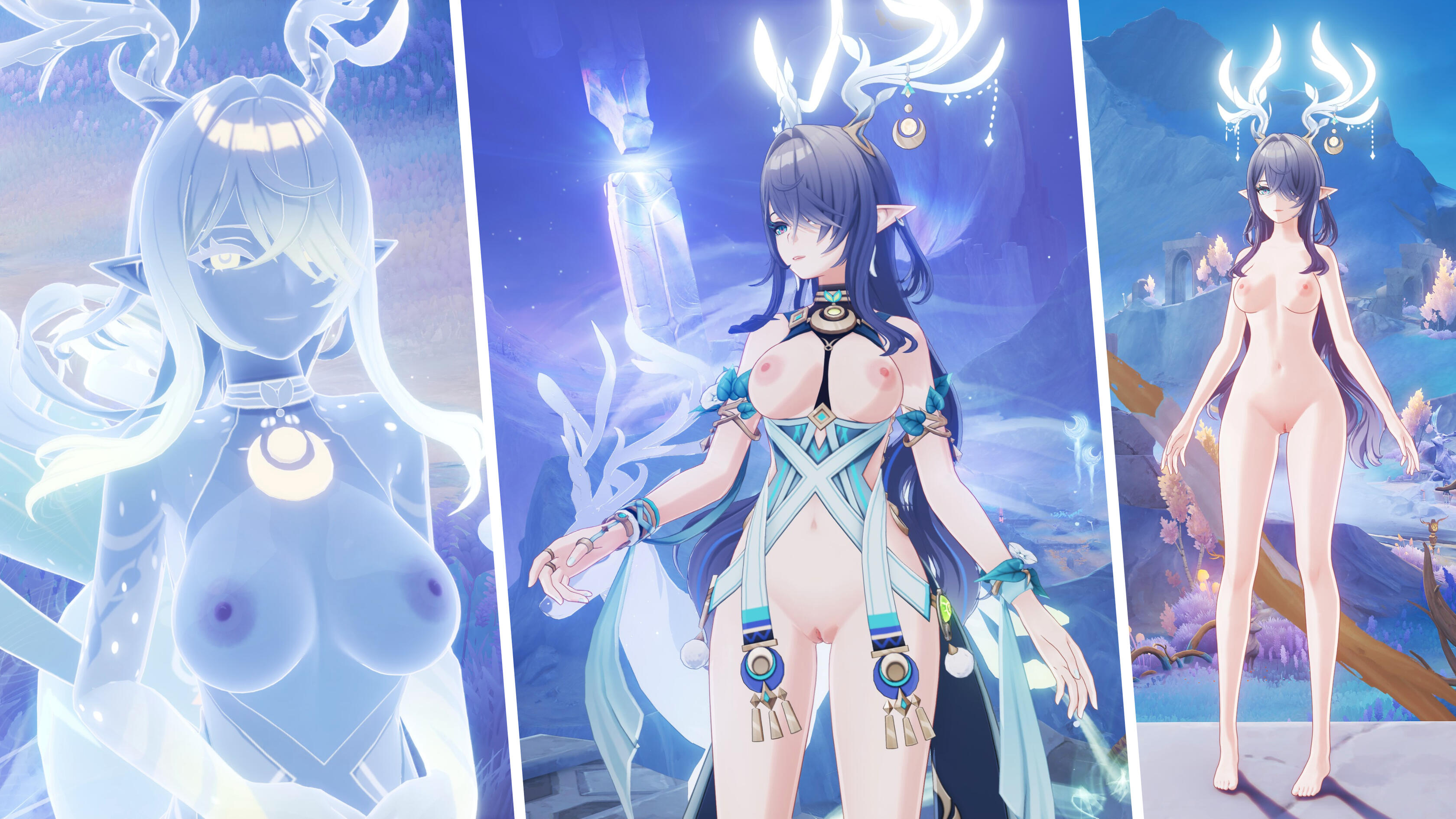 My standard nude mod for Lumine's original outfit, featuring outfit options that play with nudity!